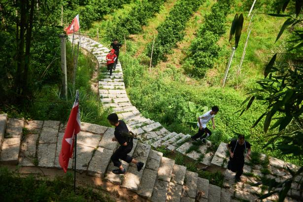 利用百丈村6公里“红军路线”,组织党员重走一次“长征路”,并在行进过程中穿插设置五个比赛项目,项目以红军长征中的著名事件作为题材,在提升活动趣味性的同时,再一次感悟先烈革命事迹。“飞夺泸定桥”趣味性与教育性并重、“穿越封锁线”比拼速度敏捷、“四渡赤水”彰显队员协同能力、“反围剿战”考验队员耐力智慧、“翻越大雪山”突出团队作战。