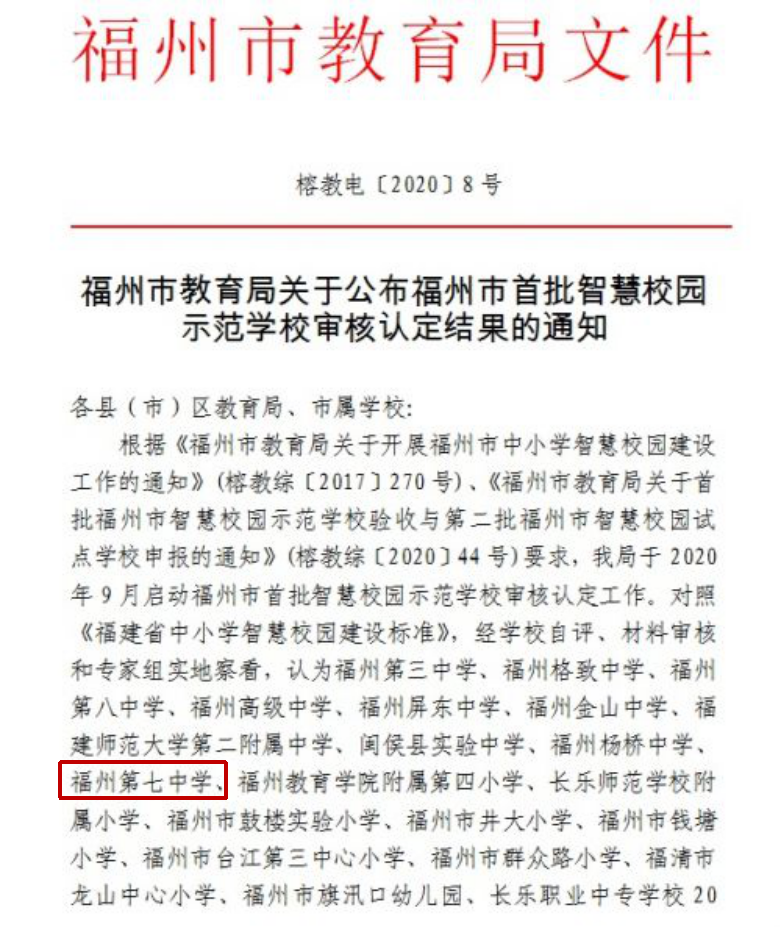 伟德足球官网下载安装在2020年9月启动的福州市首批智慧校园示范学校审核认定工作中,通过了首批智慧校园示范学校审核,被认定为“福州市首批智慧校园示范学校”。