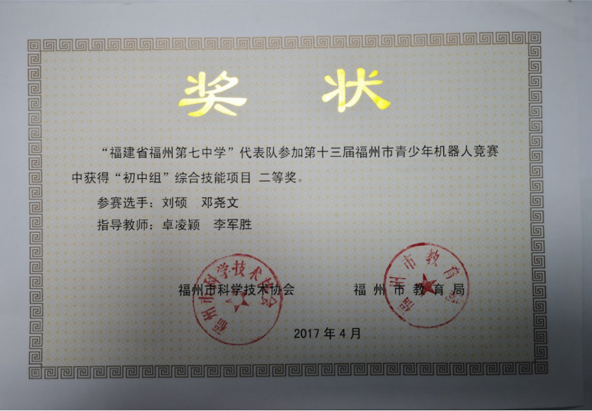 2011年以来,荣获全国奖4个、省级奖22个、市级奖50多个。近三年也获得了10多项市级以上奖励。学校多次被区科协区教育局授予“区科技活动先进学校”荣誉称号,先后被市科协、市教育局,省教育厅、省科协等部门授予“青少年机器人竞赛优秀组织学校”。