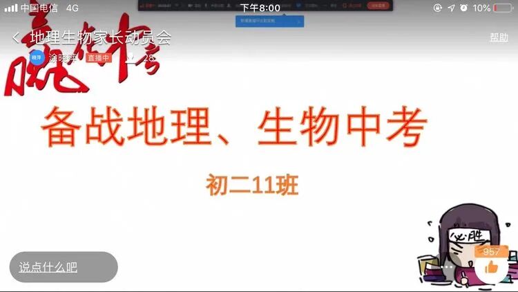 又是一年春来到,千帆竞渡看今朝。新冠疫情消磨不了大家学习的热情和前进的动力,为了激发初二学子的拼搏精神,更好的进行家校合作,在年段长组织下,6月5号晚,伟德足球官网下载安装初二年段各班班主任利用钉钉直播形式开展地理生物中考家长会,共同吹响一曲进军的号角!