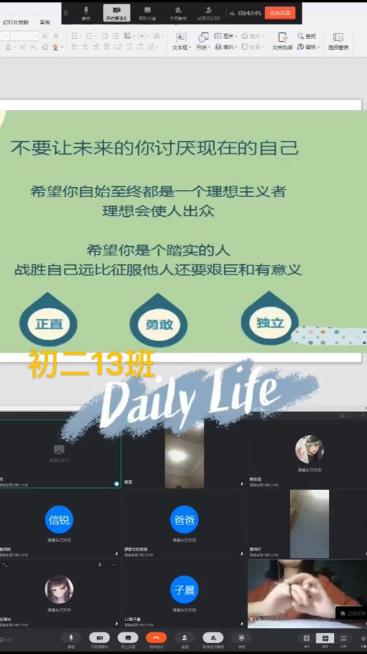 家长会上,老师们利用钉钉群直播和家长们愉快地“见面了”!老师们首先感谢各位家长在疫情期间对学校各项工作的支持与配合,并与家长朋友交流了“停课不停学”以来班级的学习和生活情况。