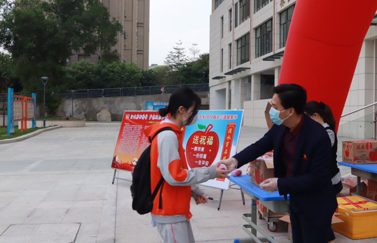 学校为每一位初三学子都精心准备了一颗红苹果,寓意“平平安安、硕果累累”,以朴素的方式,表达学校对初三学子的真挚祝福。入校处,还可以看到学校写给初三学子的一封信,寄予学子们最真挚的期盼。“每一位学子应该做到心中有家国,树立家国志,弘扬爱国情。要学会勇于担当,支撑起自己的梦想,担当起自己的责任。不虚度青春年华,不辜负少年昂扬斗志,用七月的辉煌见证青春的足迹,努力拼搏,圆梦2020!”