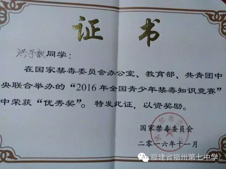 ——记福州七中洪予歆同学代表福建省参加2016年全国禁毒知识大赛实录