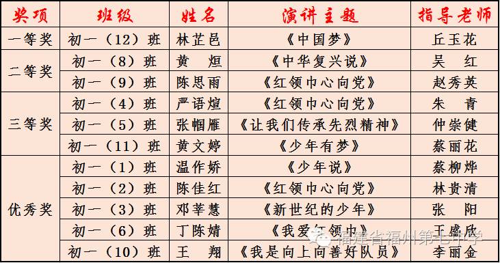 “先锋少年说·红领巾演讲家”活动获奖名单