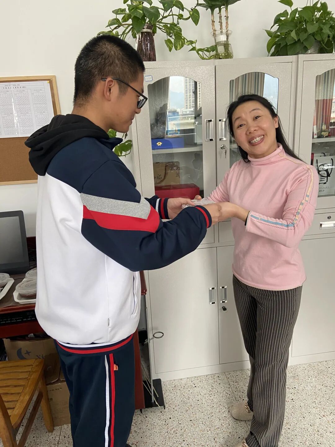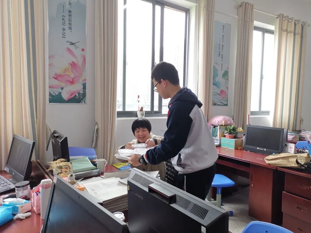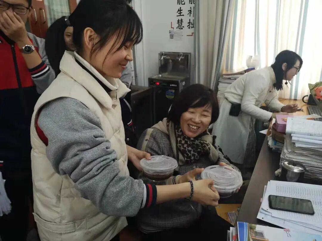 知道您还在办公室里为下节课的精彩做着准备,知道您还在办公室里批改我们字迹略显潦草的作业,我们便端着一碗碗的热粥,送到您的桌前,希望这碗甜粥能让您暂时忘却我们偶尔的小淘气,而您回给我们灿烂的笑容,也在温暖着我们的心。