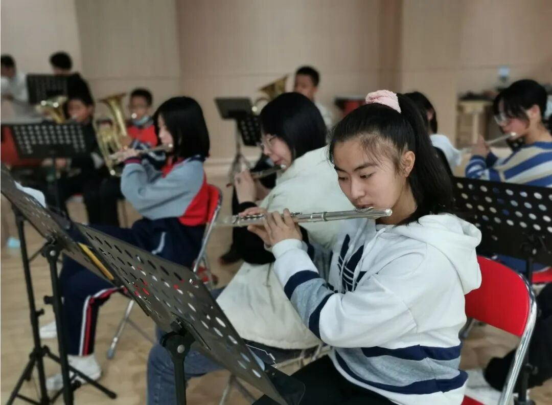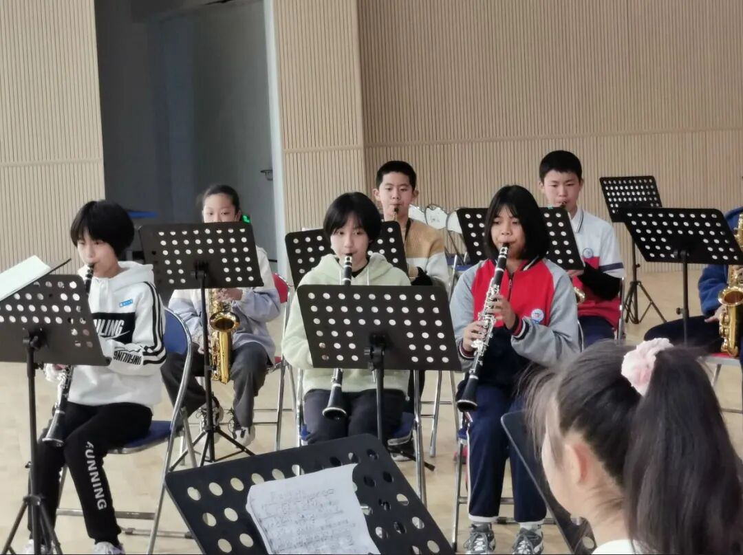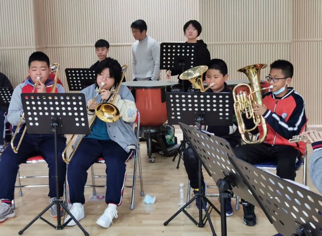 在专业老师的指导下,孩子们渐入佳境,争分夺秒地进行吹奏练习,宛若置身管乐会中。