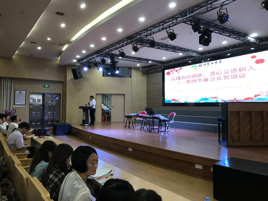 9月10日,结合教师节,方千鑫副校长向全校教师发出如下倡议:不断提高自身职业道德素养,进一步规范廉洁从教行为,以德修己、以德育人、依法执教、廉洁从教,争做师德楷模,维护教师队伍的良好形象。