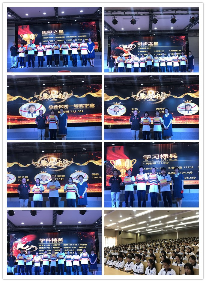 首先是高一期末质检表彰,为激励学子争优上进,高一下学期,校领导研究决定不仅要为同学们颁发奖状,更是设置了丰厚的奖学金激励学子。无论是总分优胜奖,单科明星奖,还是进步奖,都有不同等级的奖金鼓励。伴随着热烈的掌声,无数羡慕肯定的眼神像追光一般,簇拥着获奖同学走上台来,他们举起手中的奖状与奖金,那份自信与骄傲也感染着在座的每位同学。