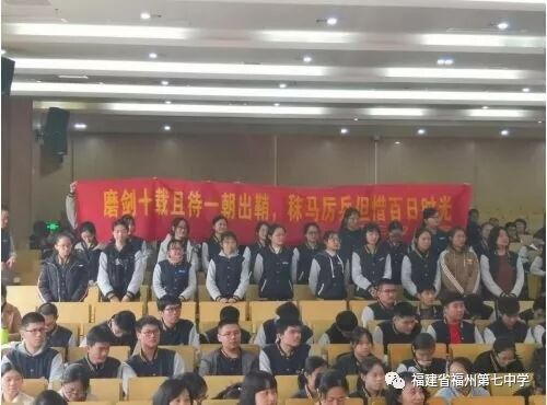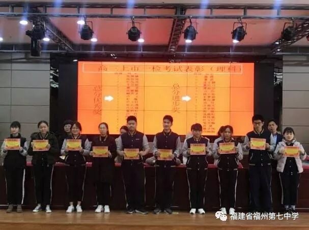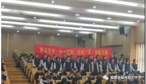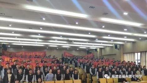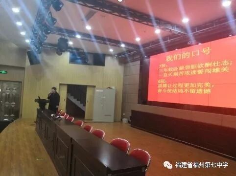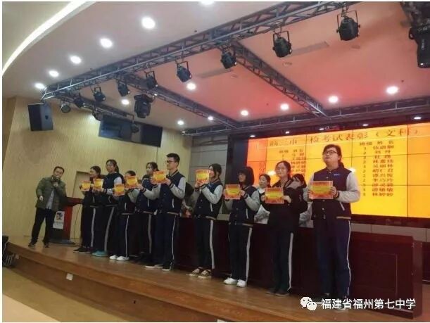 誓师大会在庄严的国歌声中开始,首先大会为在上学期期末福州市第一次质检中获得优异的成绩或者巨大进步的同学颁奖。
