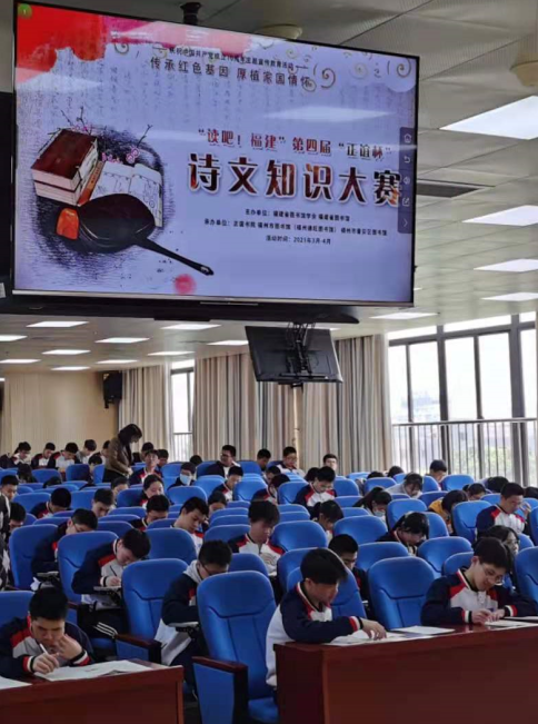 在生机盎然的四月,校德育处、校团委组织我校热爱诗文的同学们参加了由正谊书院、福州市图书馆、福州市晋安区图书馆主办的“读吧,福建”——第四届“正谊杯”诗文知识大赛。这次大赛将诗文阅读与庆祝中国共产党成立100周年主题宣传教育活动相结合,让阅读成为文化传承的桥梁,让知识成为培植家国情怀的土壤。