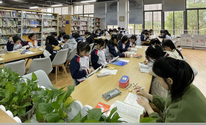 “学习”是一所学校生命力的体现,对读书的尊重与热爱是每一个七中人的追求。语文教研组以实际行动积极探索阅读课走进校图书馆的教学新模式,在此次“世界读书日”系列活动中,校德育处联合语文教研组开展了以“徜徉书海,‘悦’享时光”为主题的图书馆阅读活动。师生们在神圣典雅的图书馆里,在静谧和谐的氛围中,静心读写,真诚交流,守护心灵净土,构建充实而高尚的精神世界。