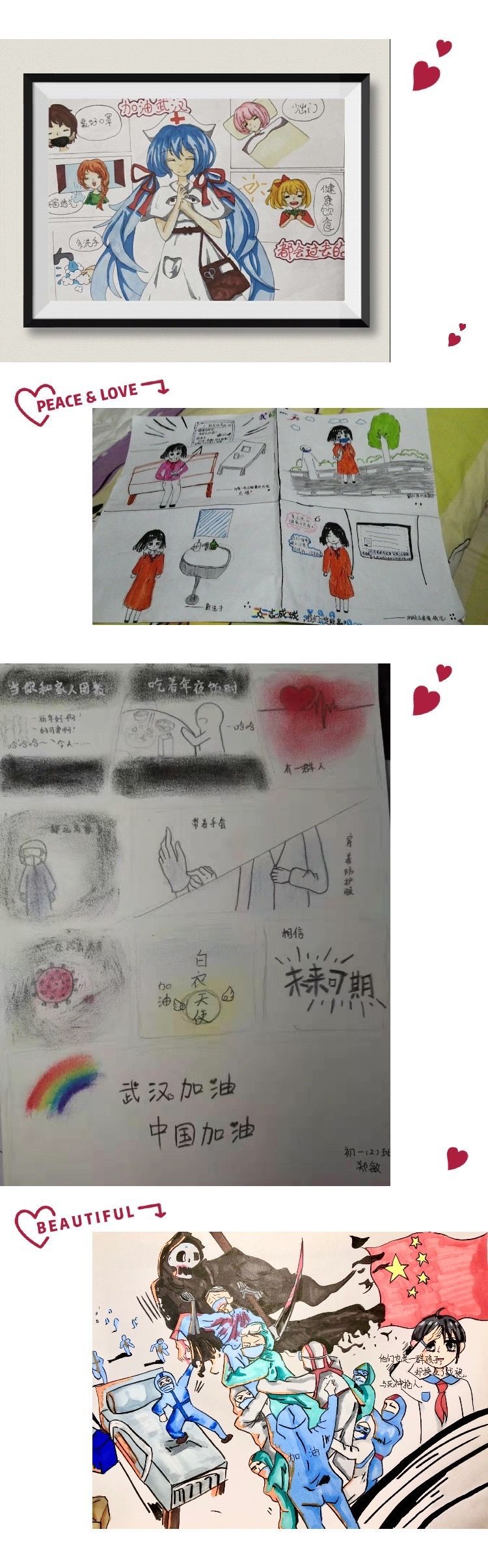 在学校德育处、团委少先队的组织下,家长和孩子们通过征文、手抄报、漫画、童谣、制作家庭小视频等不同形式表达着自己的一份爱心与信心。