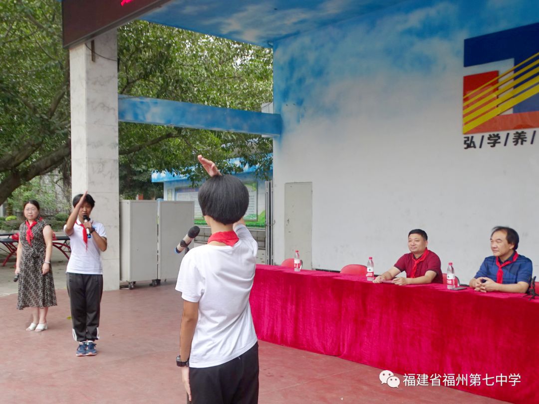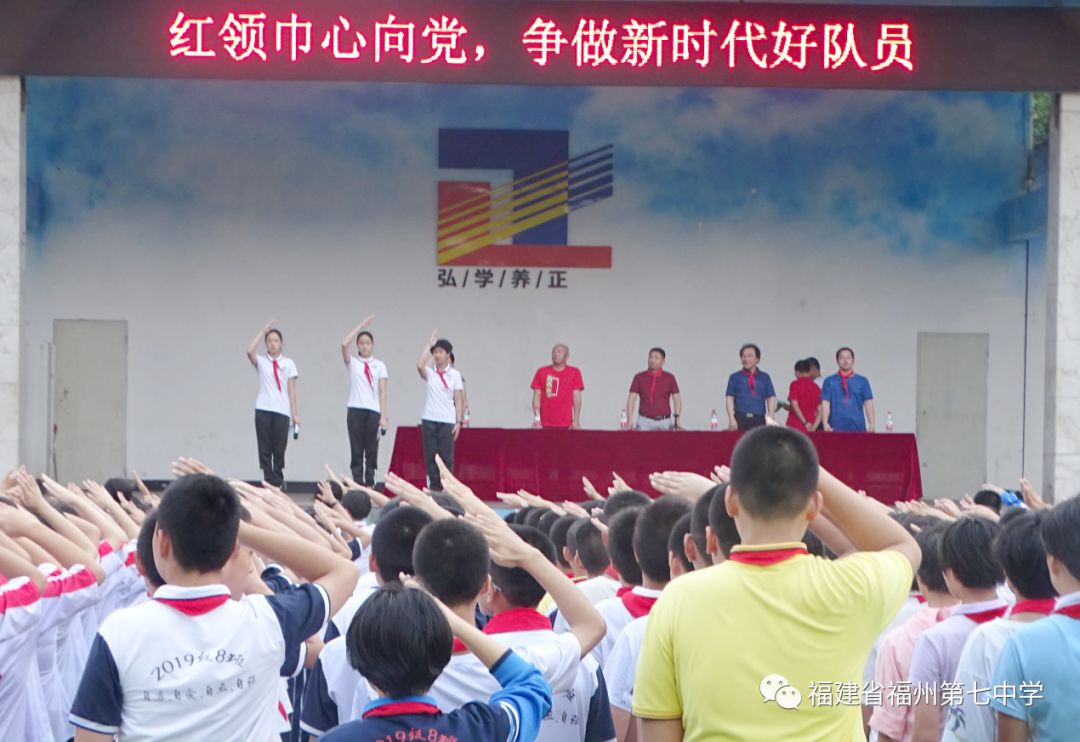 “时刻准备,振兴中华;星星火炬,代代相传。”口号声在七中校园上空久久回荡……每一位少先队员心中也都渗入了爱党、爱国的信念,孩子们的红色故事,更将不断延续。