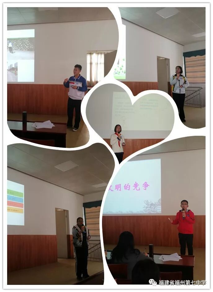 尹圣强同学“文争”的班级管理理念新颖独特;邵浚同学逢一必夺的霸气,彰显出七中班长的风采;庄芯棋同学的以身作则;兰川婉尔同学的细致柔肠;林熠同学的坚定执着;冯城同学的管理智慧等等都让与会者深深感动。15位班长勇担责任、奉献班级、服务同学的事迹赢得了大家一次次的掌声,也一次次把竞选活动推向新的高潮。台上倾情演讲,台下热情互动,整个竞选现场洋溢着积极进取、团结和谐的氛围。