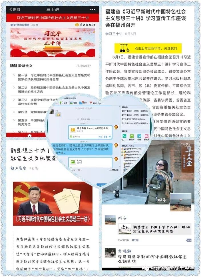 动员自主学。一是线下学习,召开党员大会,党支部会议,集中讨论、学习,确保《三十讲》精神进头脑。二是线上扩展学,以党建工作群、党支部学习群等为载体,发布《三十讲》有关的时评、视频、音频资料,邀请党员关注“魅力晋安”微信公众好,引导党员干部网上学习,运用个人自学、自主讨论等方式深化学习,号召党员干部积极参与学习。