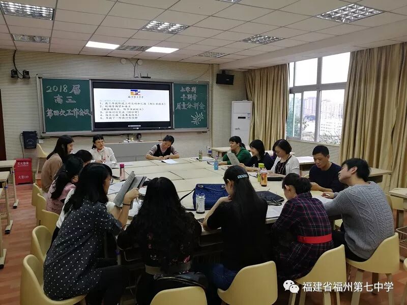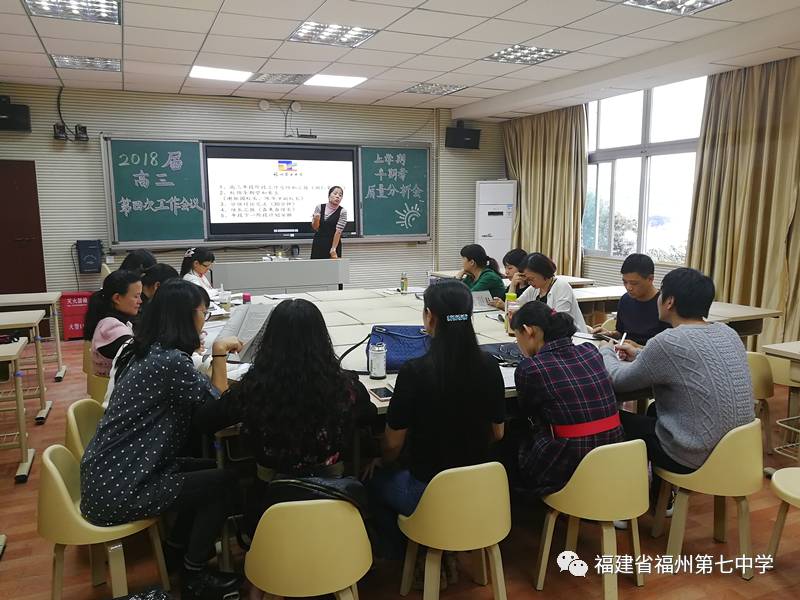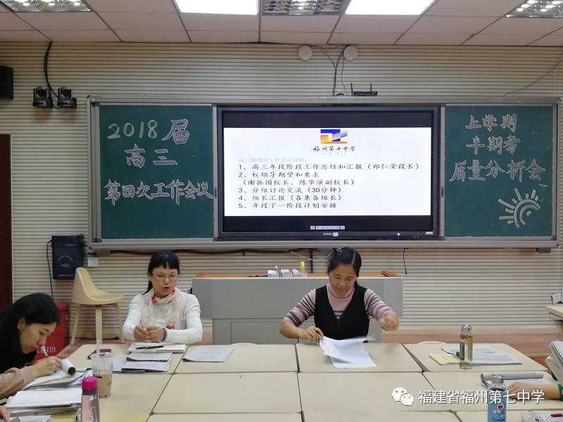 2017年11月29日下午3点30分,为对高三工作进行阶段总结,进一步细化、优化高三复习备考。福州七中召开2018届高三第四次工作会议暨半期考质量分析会,黄巧曦副校长、王杨春主任以及2018届高三年段全体教师参加了此次会议,会议由高三郑仁荣段长主持。
