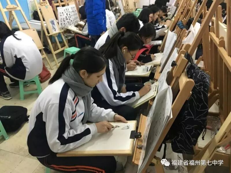 在七中美丽的校园里,时常会看到一群身背画板、手执画笔的学子,他们就是高二年段艺考生。2016-2017学年下学期,高二年段的美术专业课在高一下、高二上两个学期的课程基础上,加深了绘画训练的难度,步入更高阶段。