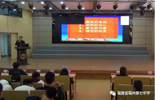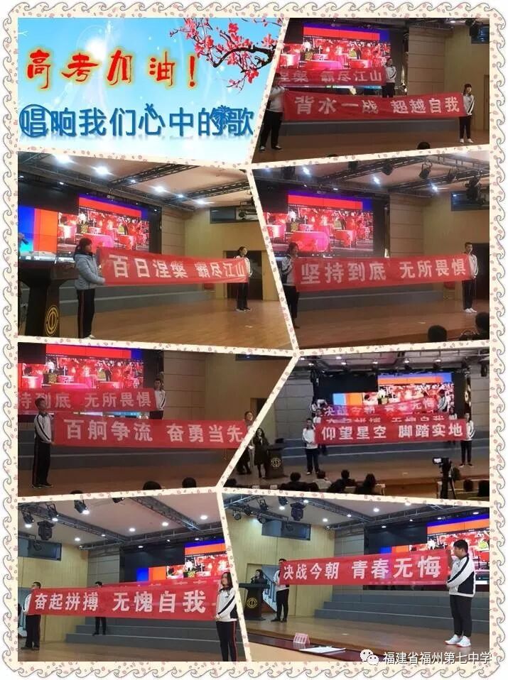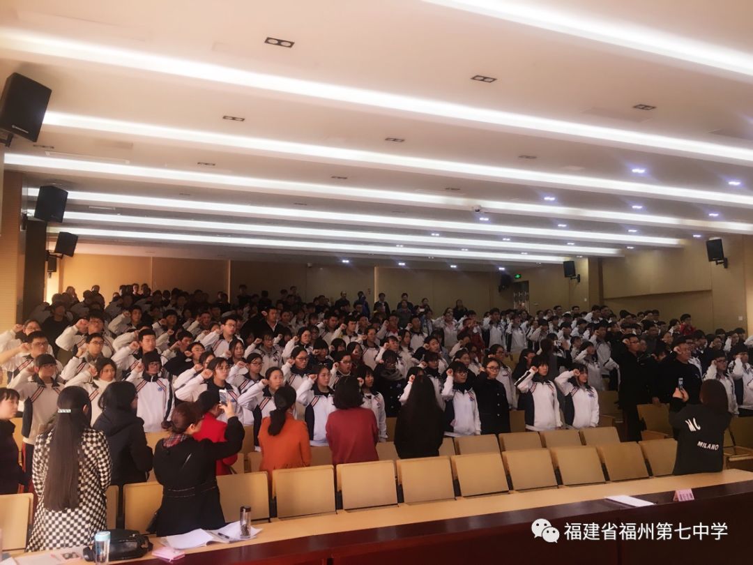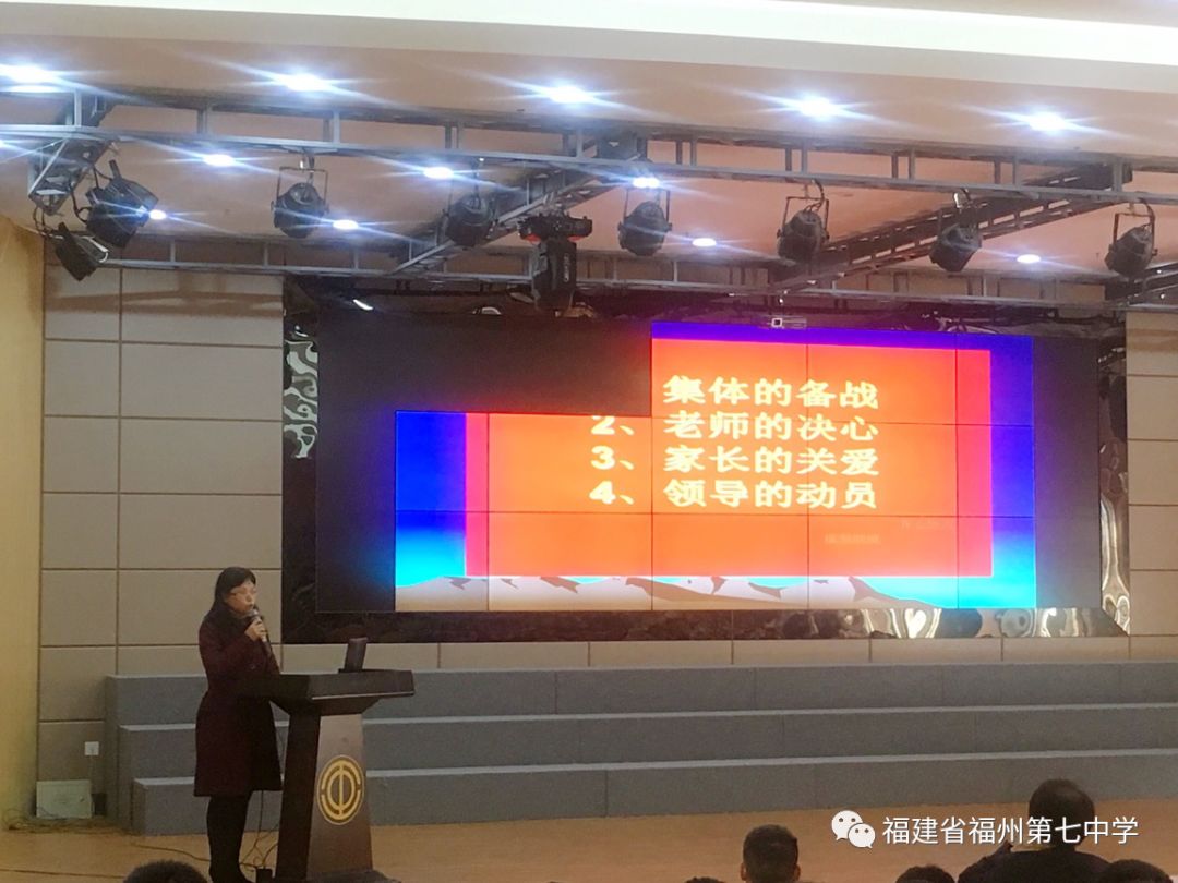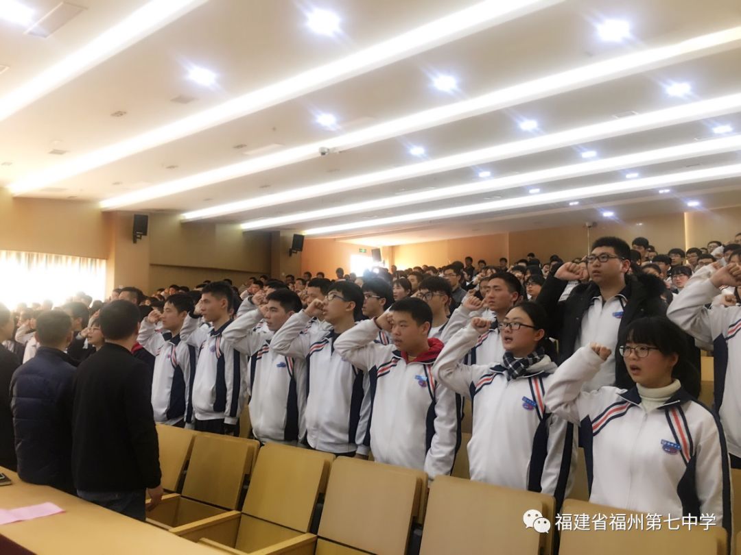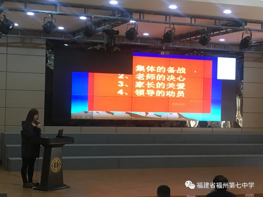 誓师大会在庄严的国歌声中开始,首先大会为在上学期末的福州市第一次质检中获得优异的成绩或者巨大进步的同学颁奖。